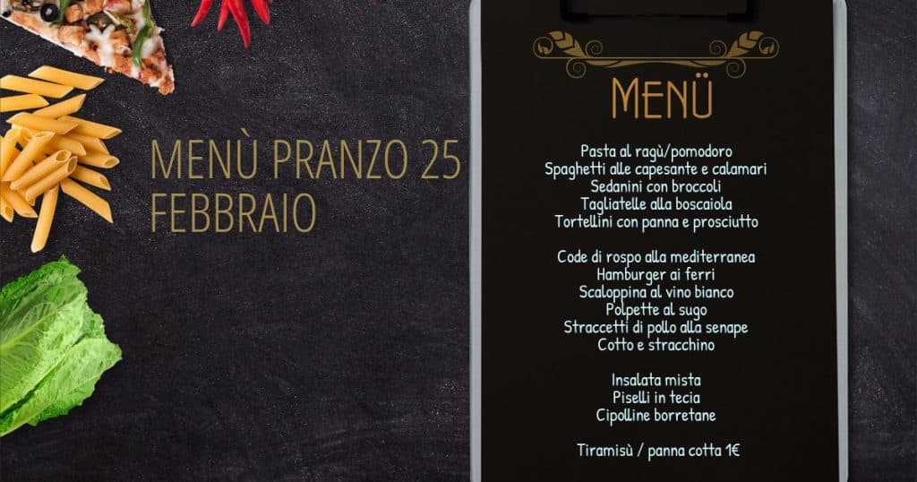 MENÙ PRANZO 25 FEBBRAIO
