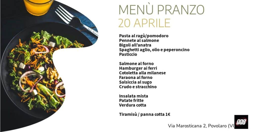 MENÙ PRANZO 20 APRILE