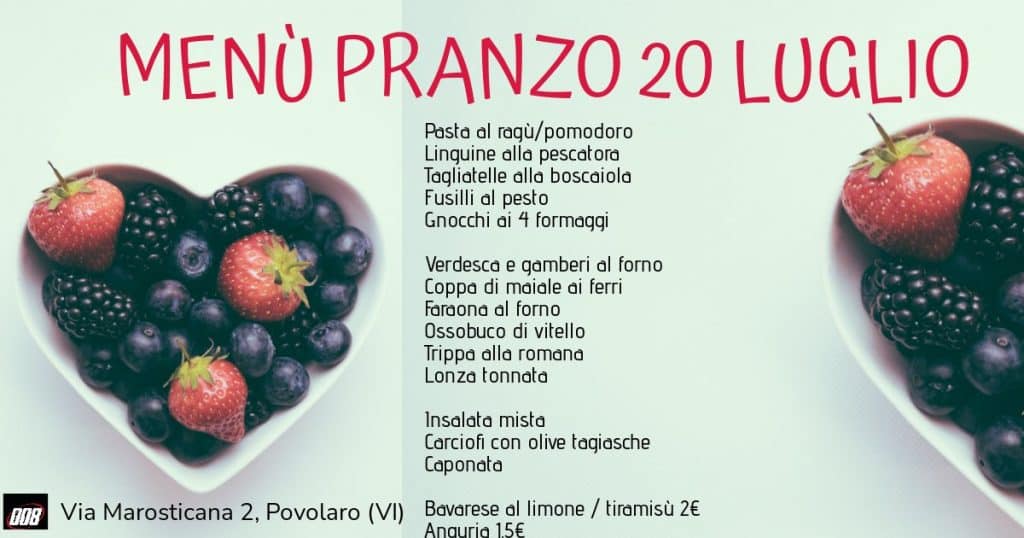 MENÙ PRANZO 20 LUGLIO