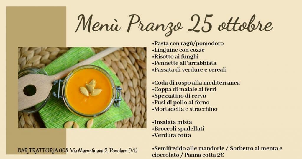 MENÙ PRANZO 25 OTTOBRE
