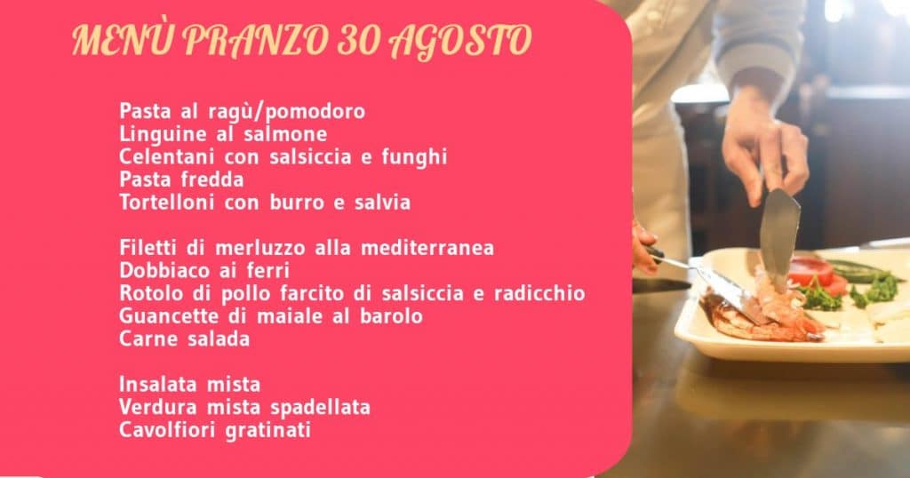 MENÙ PRANZO 30 AGOSTO