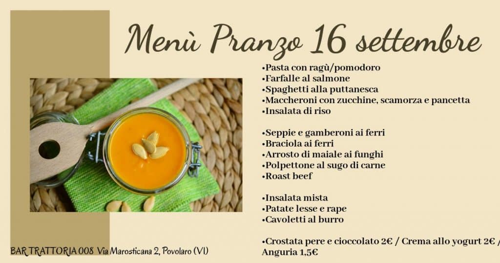 MENÙ PRANZO 16 SETTEMBRE